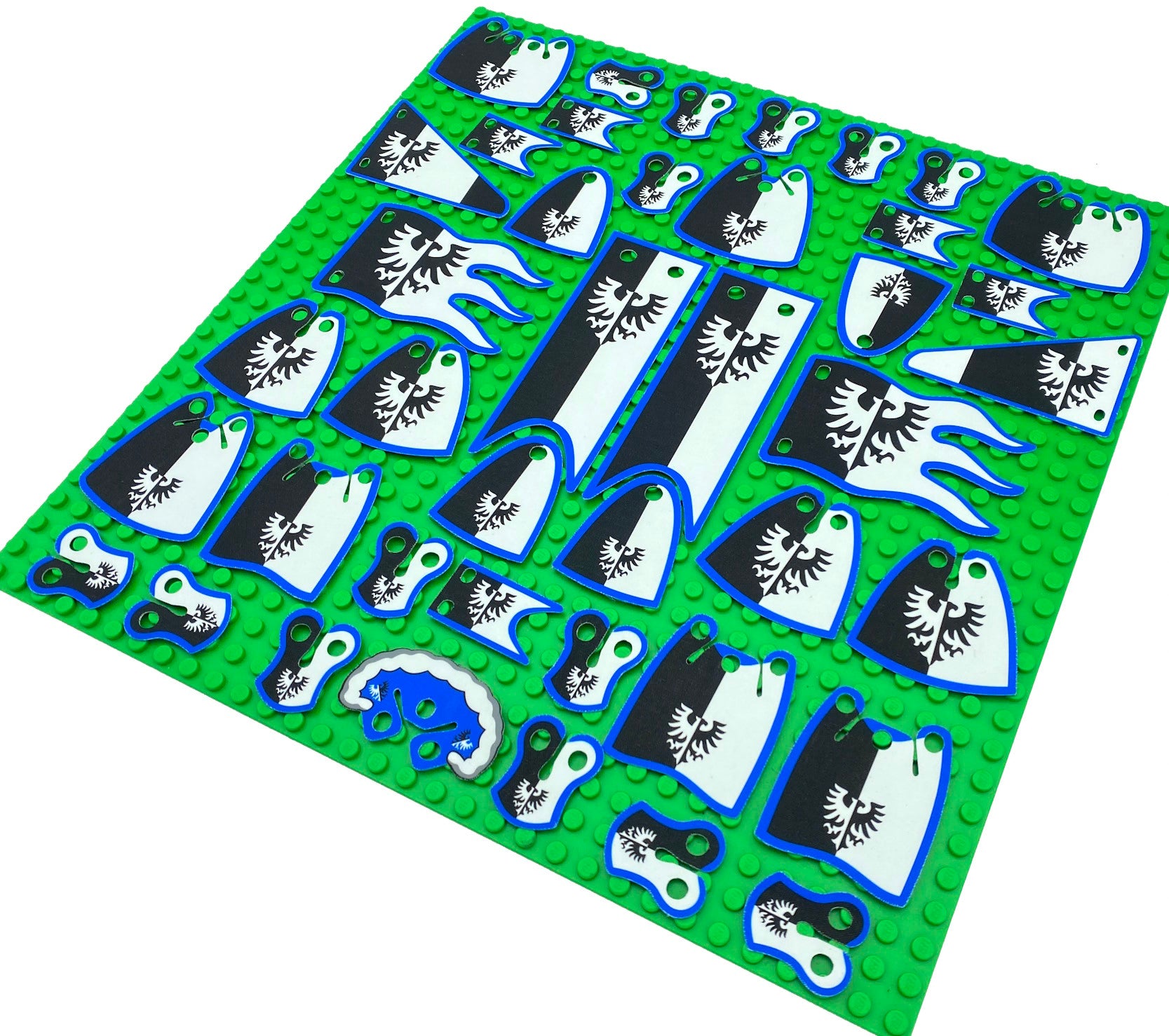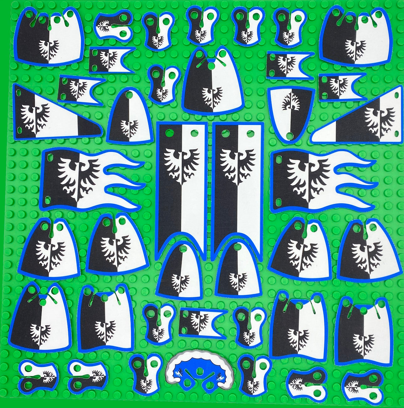 Extended set for the Modern Black Falcons capes, pauldrons and banners set. With this version you get over 40 items! The set includes capes, flags, banners and pauldrons, many with unique designs not available in the originals. All items are pre-cut and ready to use.