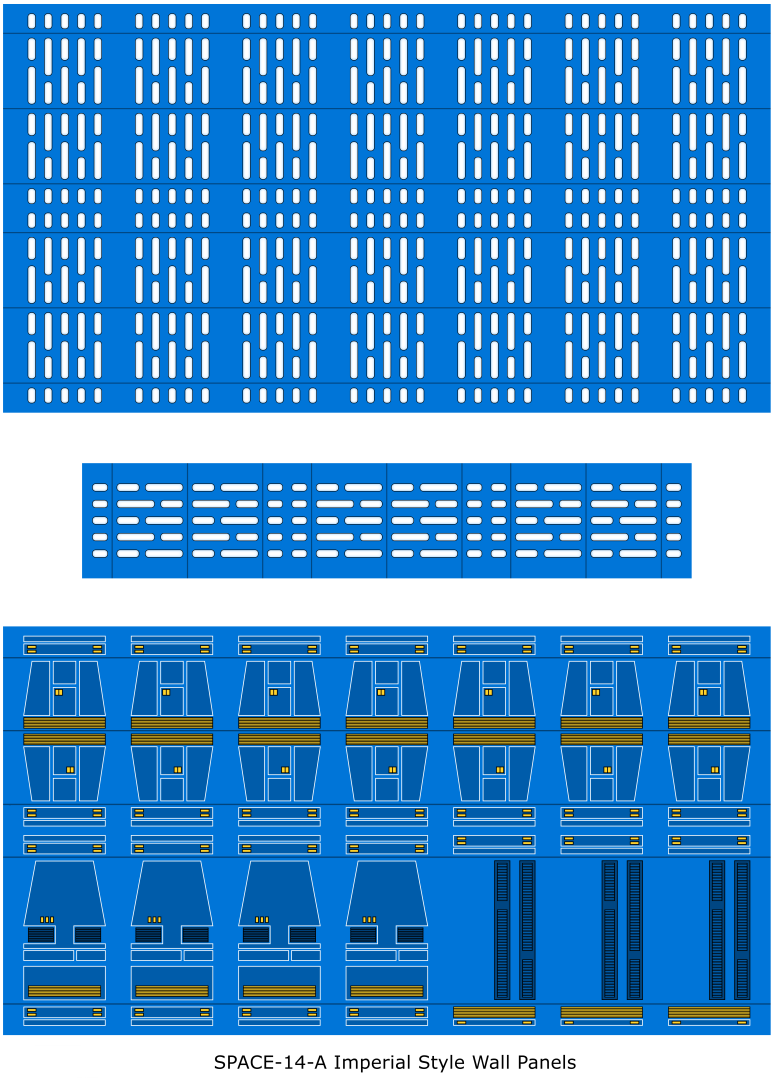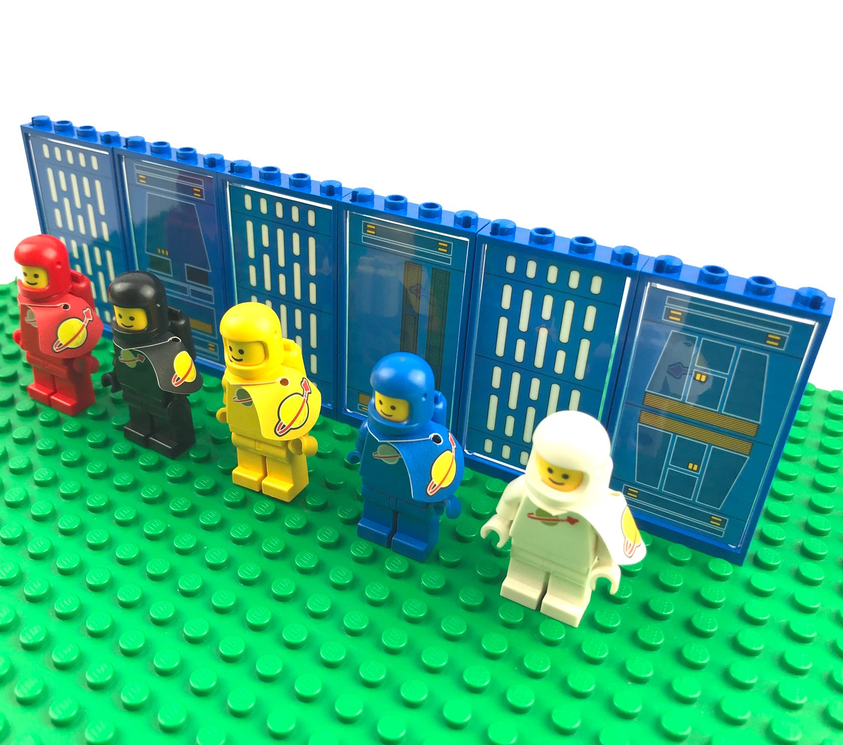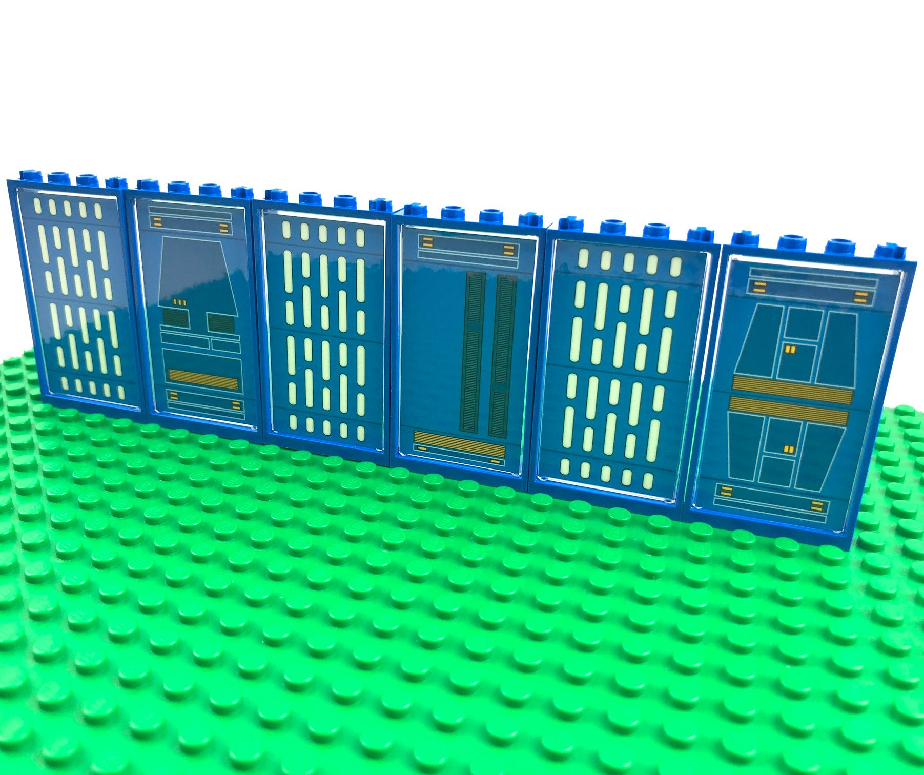 Unique variation on the Imperial wall panels seen on the Doom Star. Recoloured to Classic Space Blue! You get a whole sheet of stickers - over 30 in total! The stickers are designed to fit within the standard 1x4x6 door frame part (or can of course just be applied to plain bricks).
