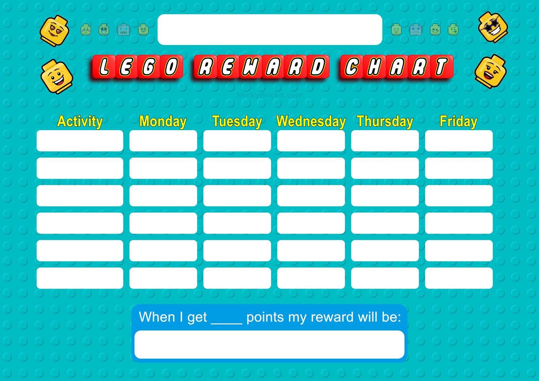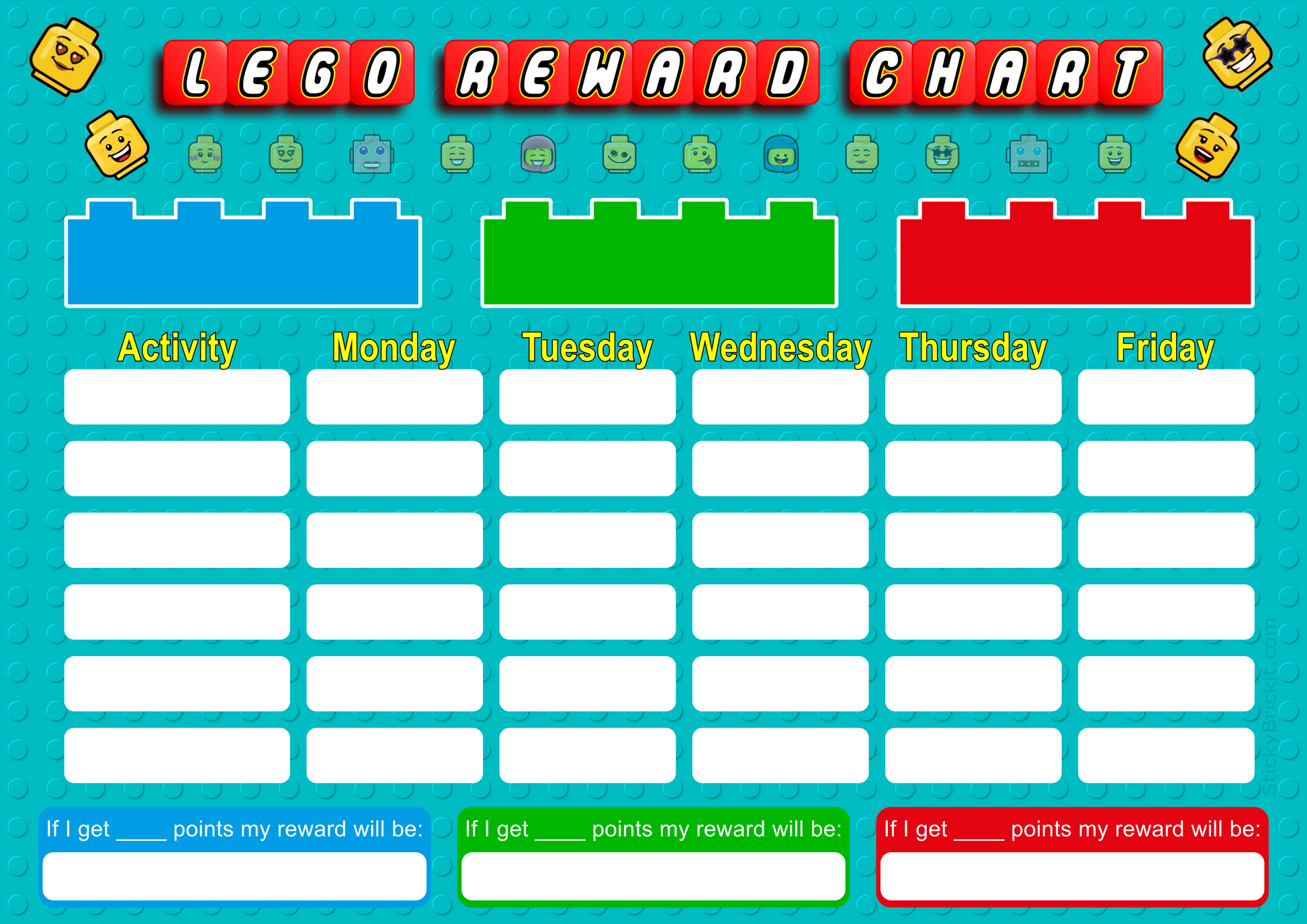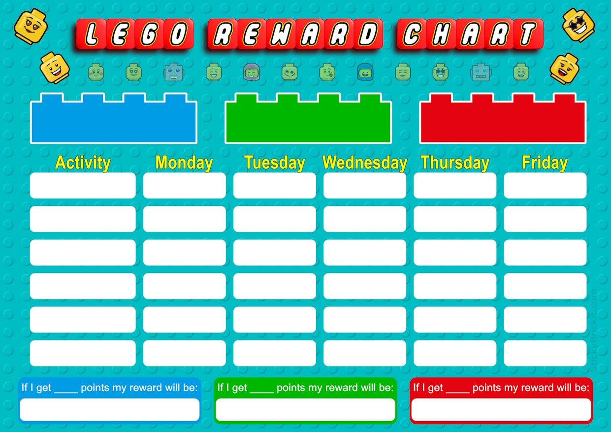 Reward your kids / husband for good behaviour using this fun chart! Two versions available - A4 for a single person and A3 for up to three people. If printed and laminated can be re-used many times!
