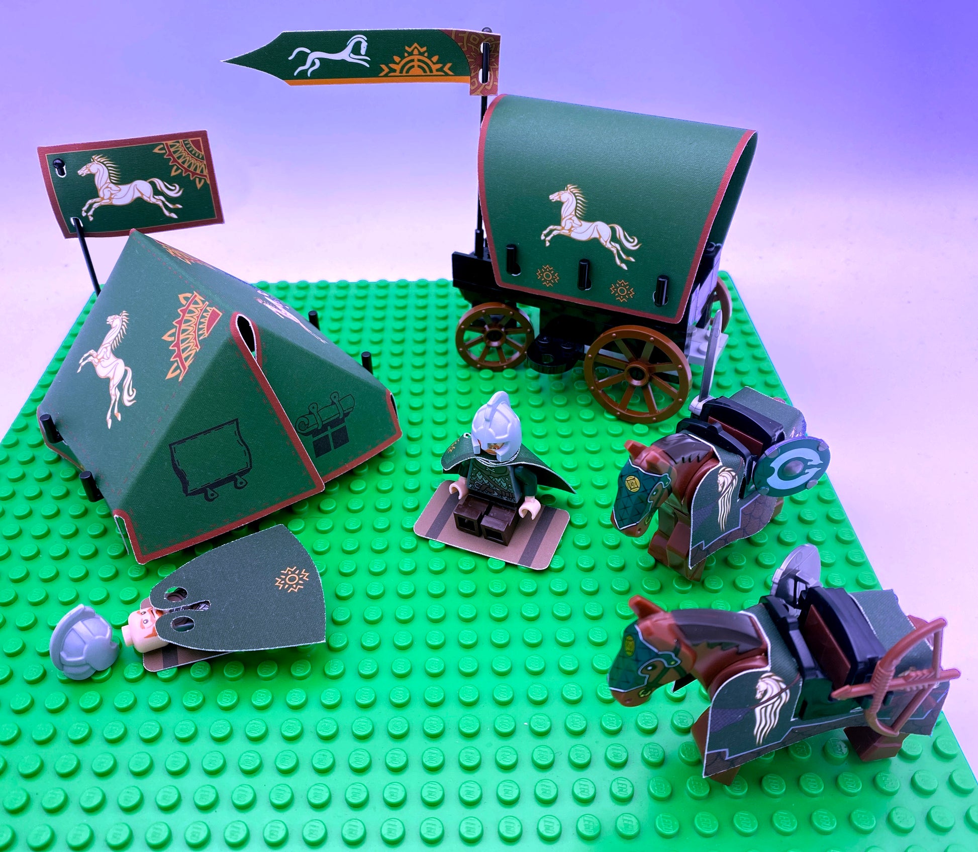 Rohan: Encampment Set (LOTR-ROH-02) Tent, Wagon Tarp, Flags, Horse Bardings + More!